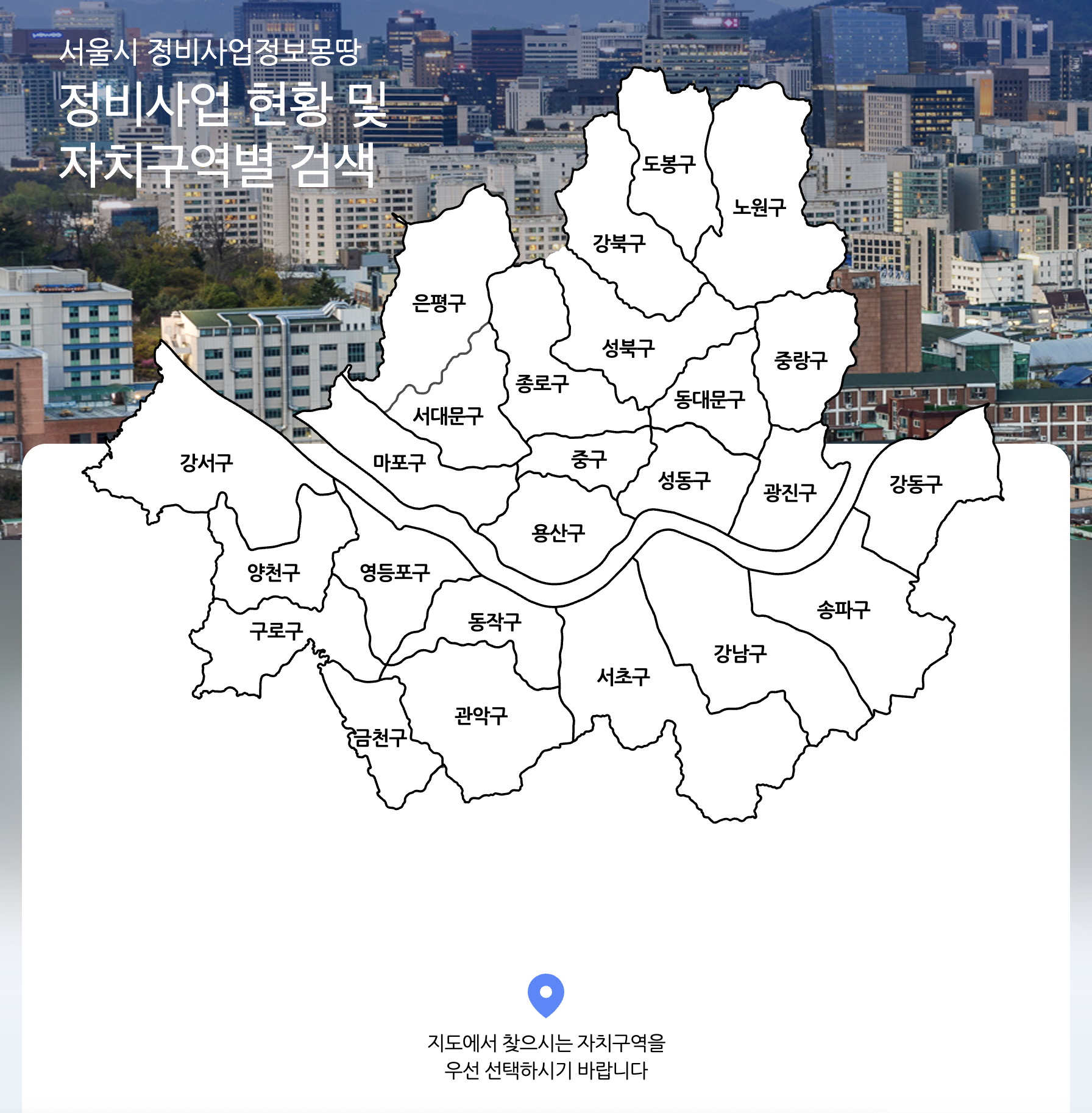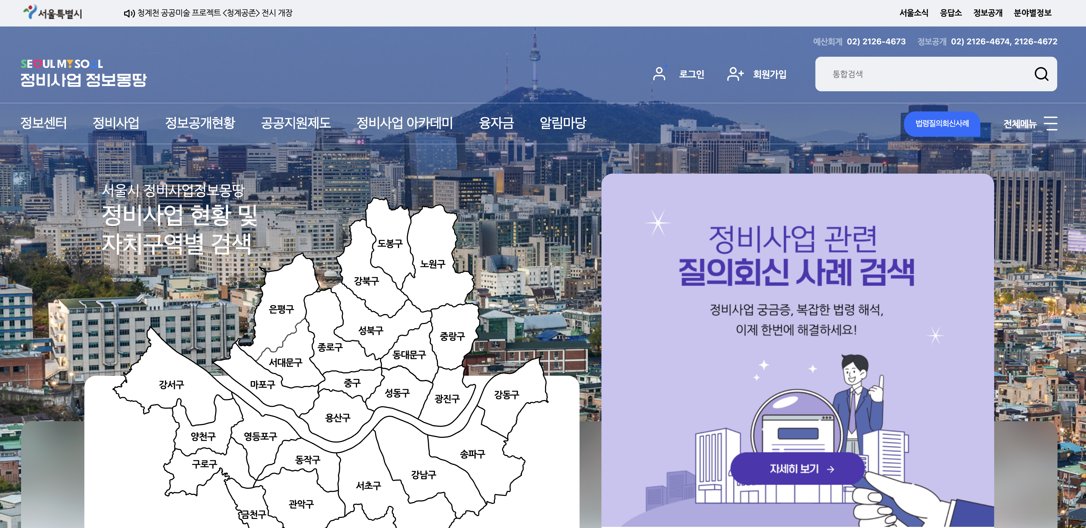서울시 정비사업정보몽땅 사이트에서는 정비사업 현황 및 자치구역별 검색을 할 수 있습니다.