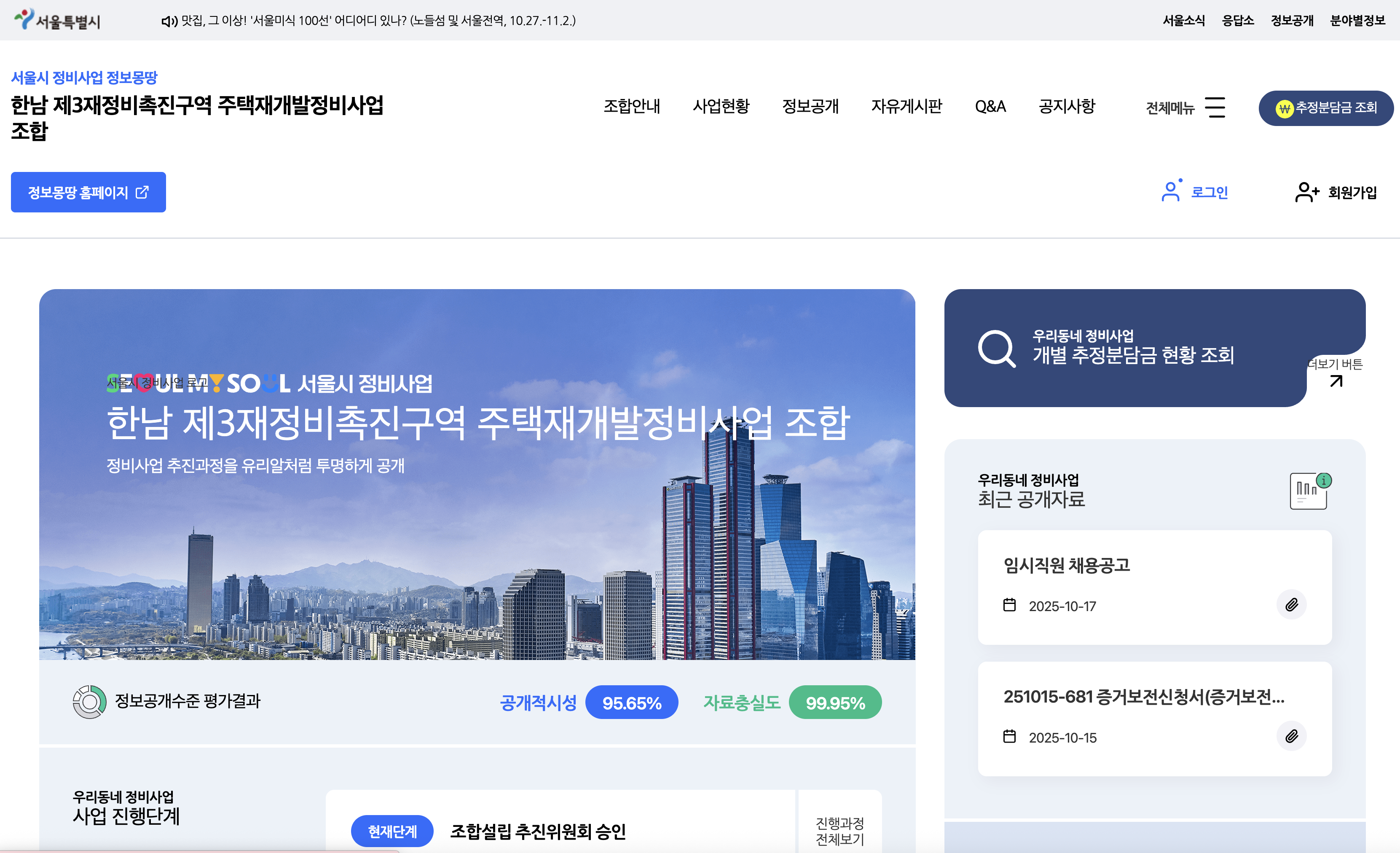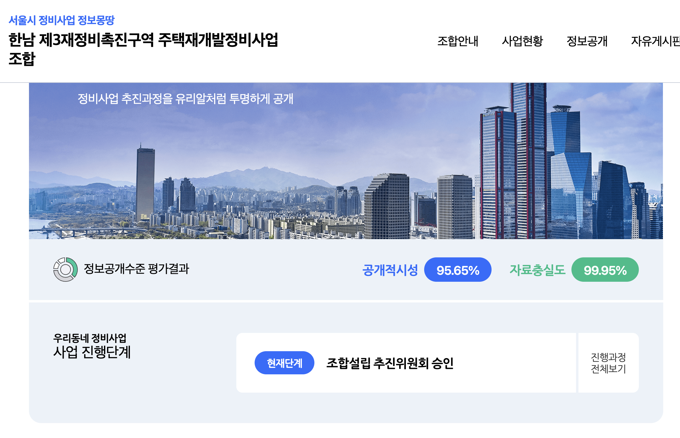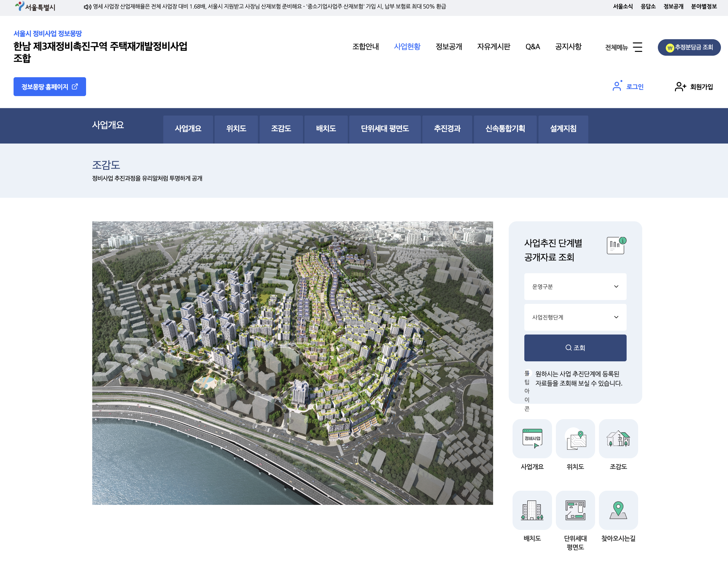 그럼 다음과 같은 한남 제3재정비촉진구역 주택재개발정비사업 조합 상세 페이지로 연결됩니다.