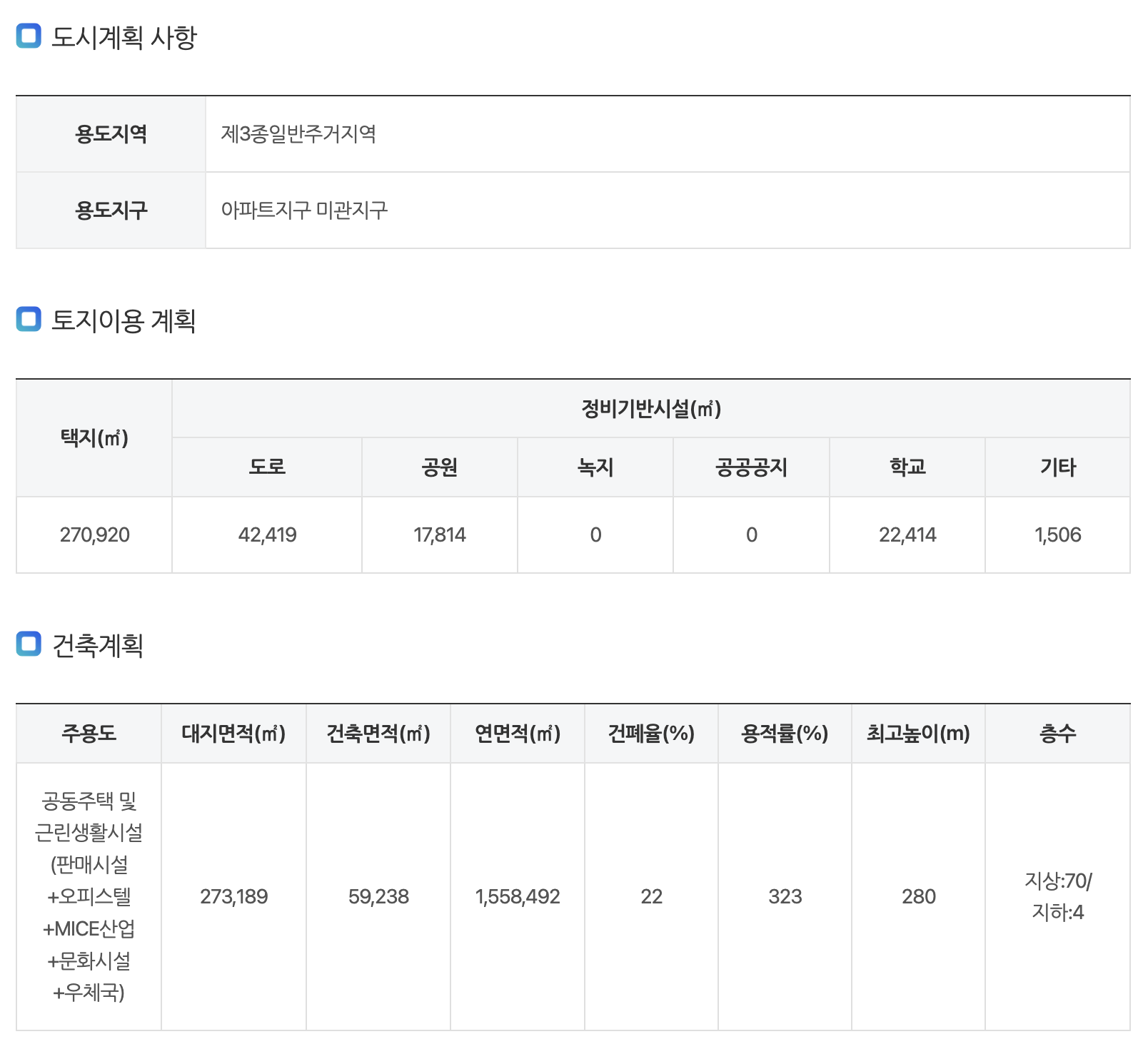 건축계획은 최고 높이 280m, 층수 지상 70층/지하 4층으로 되어 있습니다